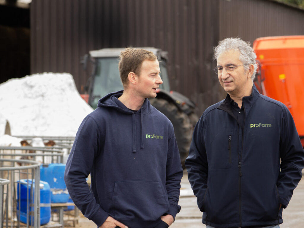 Stijn kwam bij proFarm terecht omdat de vorige eigenaar al klant was bij Jan. Bij de overname heeft hij die samenwerking gewoon verdergezet. “Het liep goed, dus waarom zou ik dat veranderen?” zegt Stijn. “Ik had al veel goeie verhalen over proFarm gehoord, dus dit was het ideale moment om dat eens zelf te proberen. Vanaf het begin had ik het gevoel dat Jan echt met mij wilde voortdoen om zo goed mogelijke producties te halen. En dat is ook zo gebleken: intussen zijn we zelfs al eens naar 44 kg melk gegaan. Dat was een schoon moment, we hebben er zelfs een taartje op gegeten.”